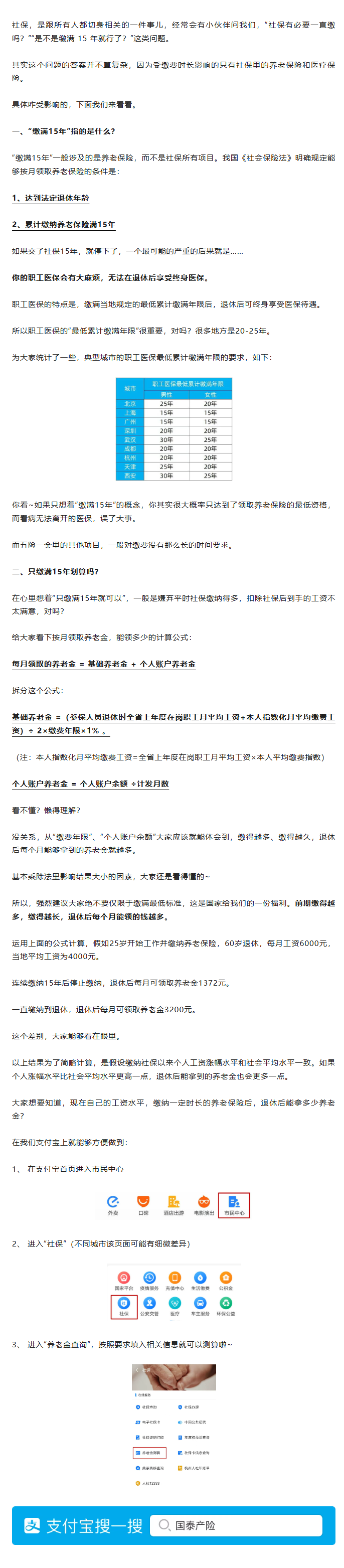 社保缴满 15 年就行了?